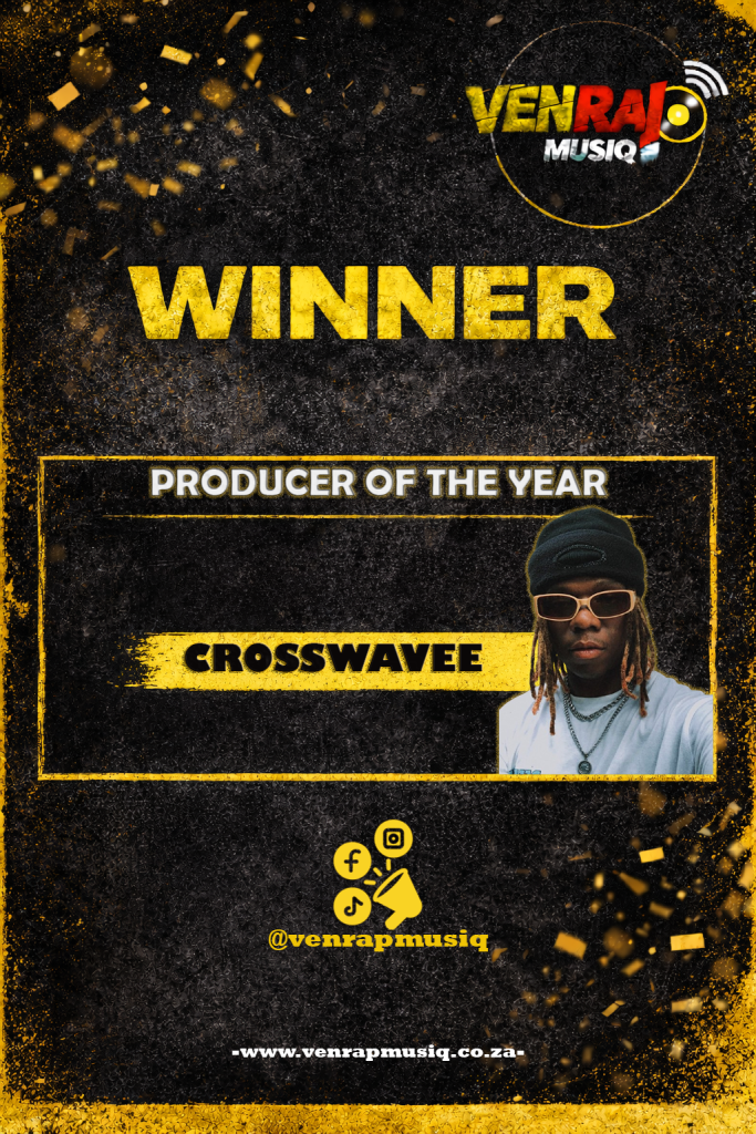 When the credits roll and the hits start playing, one name keeps popping up – Crosswavee. This year, that consistency, vision, and sound earned him the title of Producer of the Year at the Venrap MusiQ Awards.