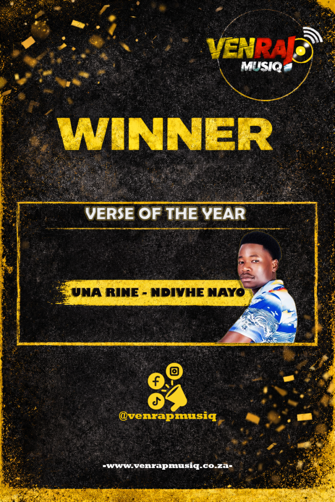 Some verses don’t just rhyme — they hit home. In 2025, one verse stood above the rest, cutting deep into real life, real struggle, and real hope. That verse belongs to Una Rine, officially voted Verse of the Year at the Venrap MusiQ Awards for his performance on “Ndivhe Nayo.”